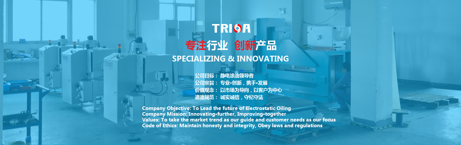 TRIOA? 臥式靜電涂油機利用獨特的噴嘴使油一次霧化荷電,二次油霧篩選氣流控制及三次油霧靜電吸附的涂油...